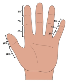 一手拇指占一手功能的36%,其中末节和近节指节各占18%。
