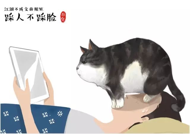 大家都特别喜欢的一张作品叫“遇事冷静,脸小三分”,我会把人的情绪和猫的一些日常生活中的好玩儿的点,融合到一起。