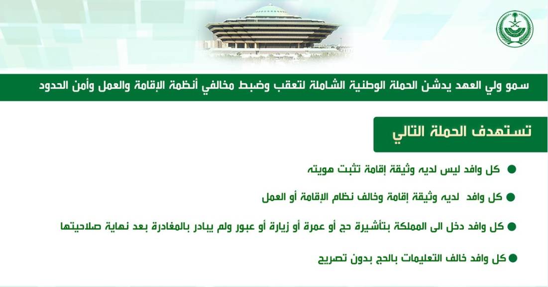 本次针对外国人大赦运动的目的:纠正所有违反沙特居住、工作政策的外国人的非法居住状态,不实施任何惩戒措施,在办理离境之后,以后通过正常渠道办理签证以后,任然可以正常入境沙特。
