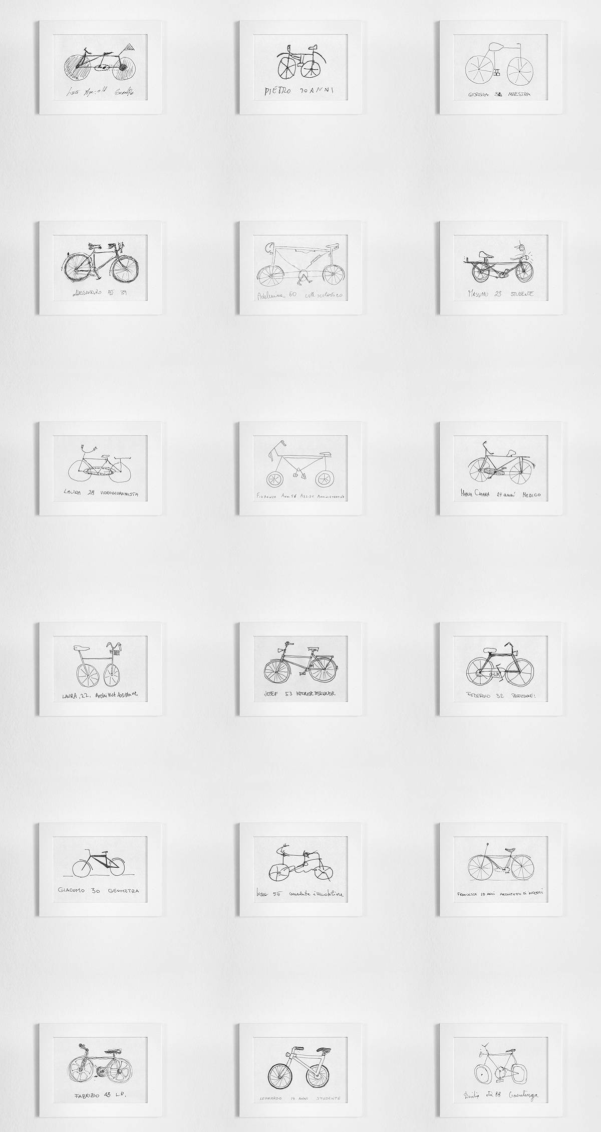 从2009年开始,来自意大利博洛尼亚的设计师Gianluca Gimini就开始做一项测试。从朋友到陌生人,并且他还拿着笔和纸,让他们参照自己记忆中的自行车,画出一辆完整的自行车。