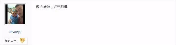 果然,有人马上跟帖回复:“教会徒弟,饿死师傅”。