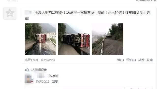 玉溪大坝前10米处!昨日(11月6日)16点半一双桥车发生侧翻!两人轻伤!导致当时堵车,据悉是车速太快导致。
