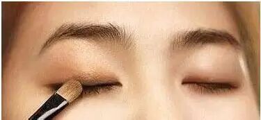 眼影讲究层次感,用最浅的大地色系眼影打底,然后再用深一点的颜色在眼线上方修饰,刷出层次感。