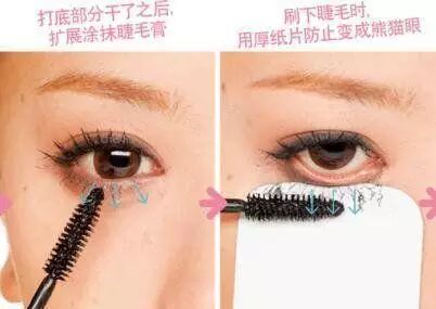 睫毛膏刷头均匀粘取,从睫毛根部往尾刷去,能保证睫毛大幅度上翘,下睫毛也是同样的方法。等干了之后再按照方法涂一遍,使睫毛更加浓密。