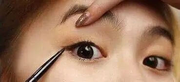 眼线笔从眼部中间开始着色,延伸到眼尾处微微延伸上挑,然后再适当修饰眼皮前端,上眼线画好了,下眼线只要眼头稍微修饰。