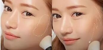 咧开嘴大幅度微笑,刷子粘去少许的腮红,在颧骨处轻轻扫过。腮红一定要淡,过浓用刷子扫色抹匀。