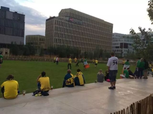 例如当时爱尔兰对战瑞典的比赛的时候,场下爱尔兰球迷和瑞典球迷。。踢起了球。没错,一群爱尔兰球迷和瑞典球迷在场下开心的踢着友谊赛。