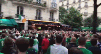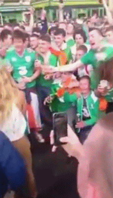 于是就有了几百个爱尔兰人围着一个法国妹子大唱情歌,情到深处都单膝跪下了。