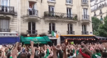 还有,当时他们在巴黎一栋民宅楼下,不知道怎么就和楼上的一个法国人对上了眼,每当这个法国人出现在阳台,楼下的爱尔兰人就一阵欢呼。