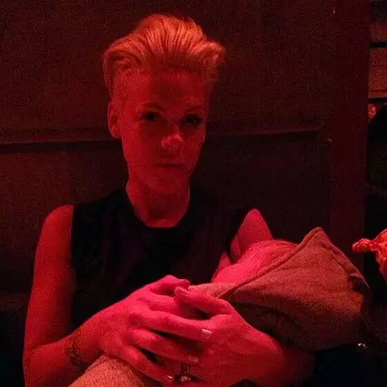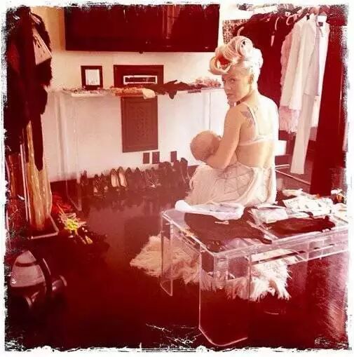 这么酷的Pink做了妈妈之后也在坚持母乳喂养。