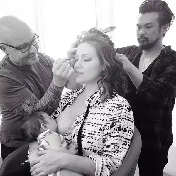 随后,刚刚生了第2个宝宝的Alyssa Milano就模仿Bundchen,在工作间隙拍了同样的哺乳照。可是人家已经年过40了,依然如此敬业。