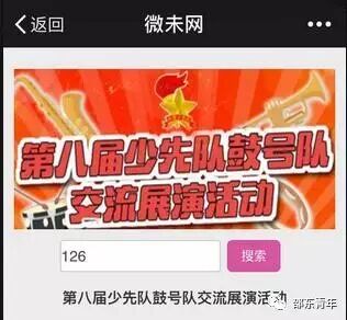 点击最下端“阅读原文”,输入编号“126”,即邵东县城区二完小鼓号队,当出现二维码图片时,请识别图片关注“红领巾集结号”;