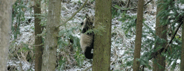 ↑野化的大熊猫幼崽“小核桃”需要在雪天里适应自力更生的生活