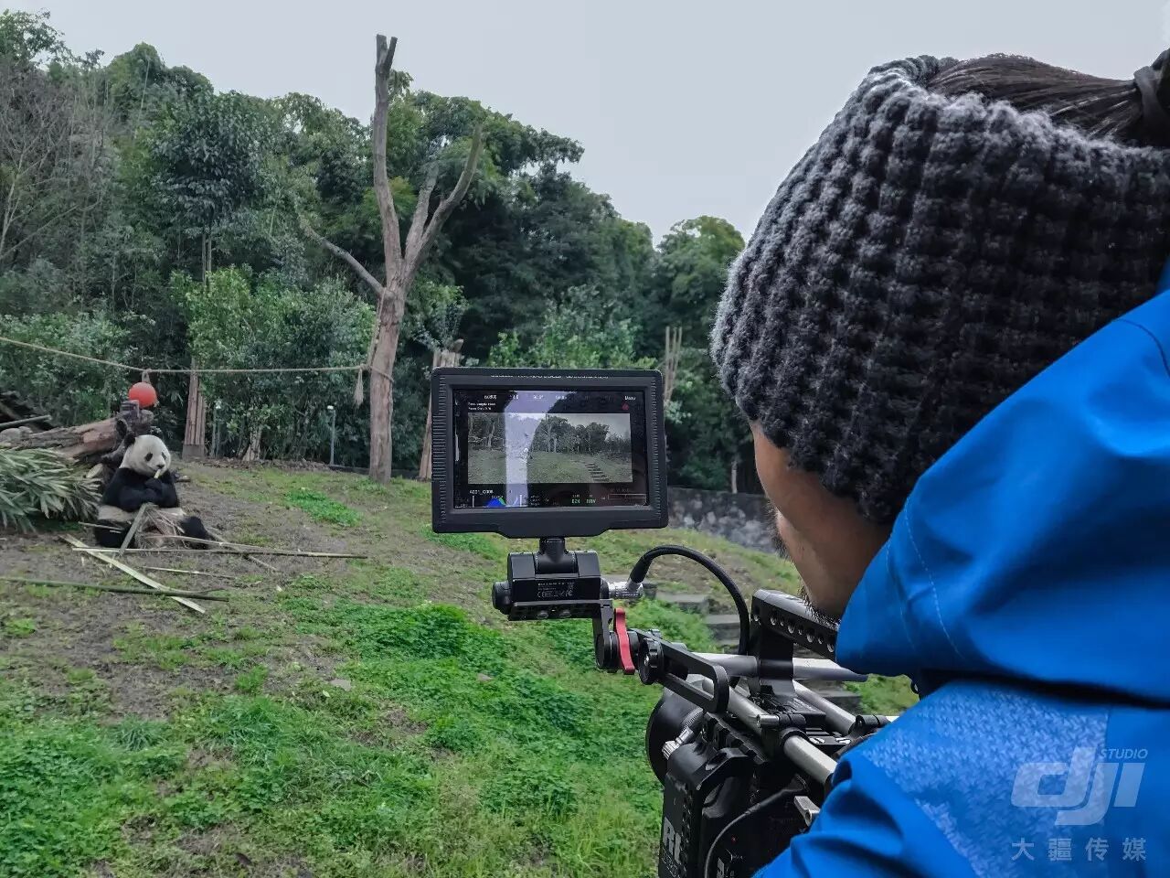↑原本设计这个镜头的时候,摄制组设想的是,当饲养员一打开闸门,小熊猫们就咕噜噜跑出并四散开来。结果,门一开,这些才半岁的小熊猫们居然就径直朝拍摄人员走来,好奇地闻了闻摄像机后,便顺着我们的腿往上爬,直接爬到我们腰上坐着。但因为基地内有规定,即使大家都统一穿着消过毒的制服,也不能用手触碰这些小生物,所以面对着这些近在咫尺的小熊猫们,我们也是抓心挠肝地可望而不可及。