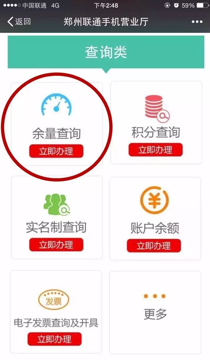 举例:比如您要查询套餐余量,点击“余量查询”,