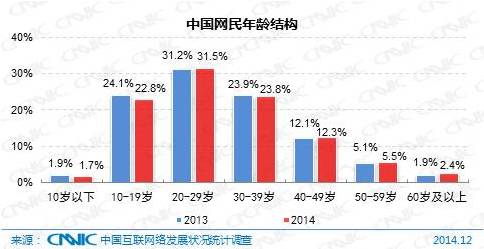 我国网民以10-39岁年龄段为主要群体,比例合计达到78.1%。其中20-29岁年龄段的网民占比最高,达31.5%。