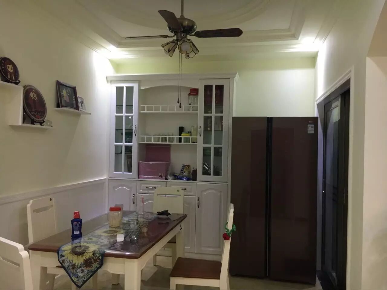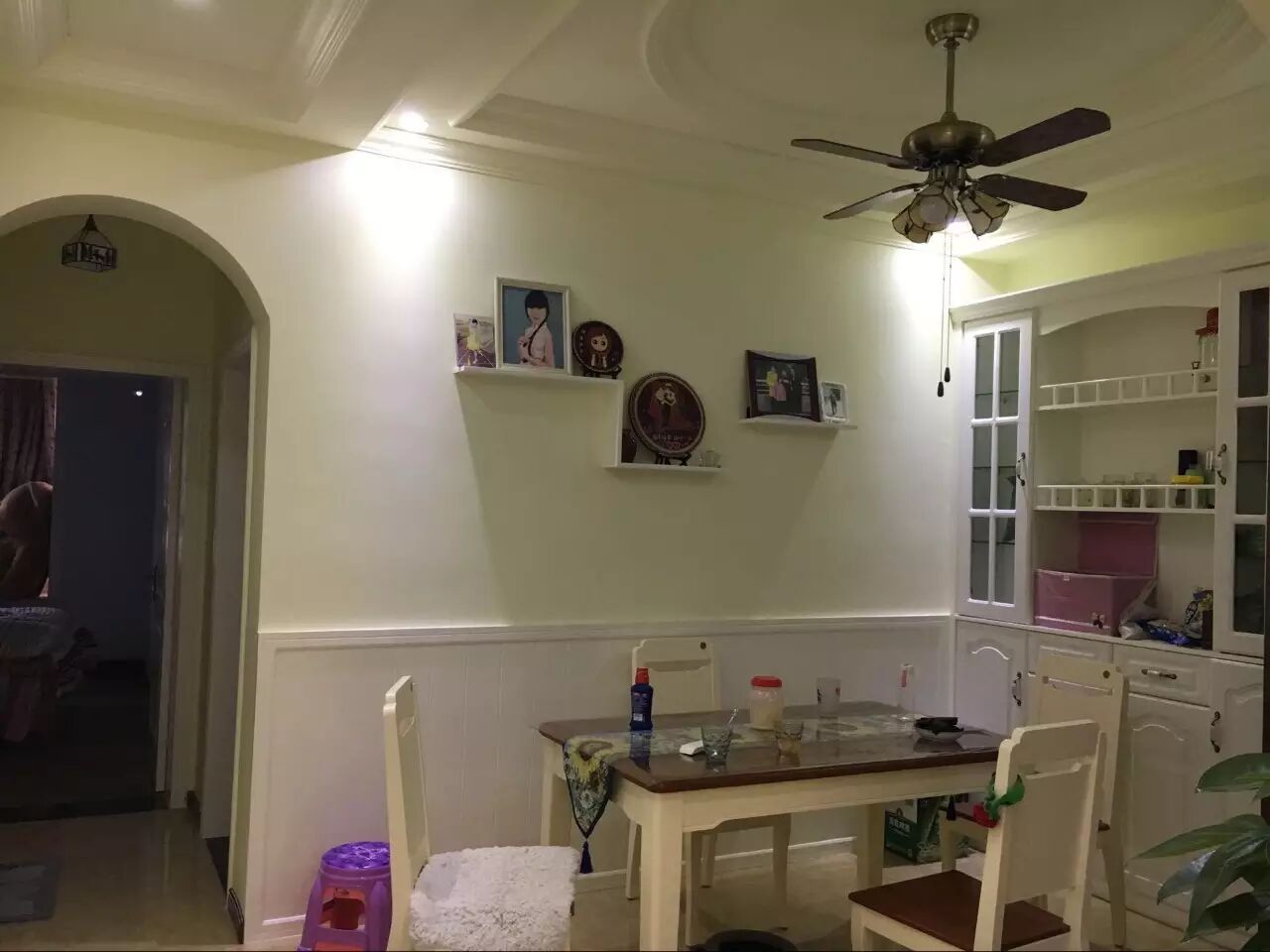 餐厅的灯是风扇灯,家里的灯几乎都是网购的哟,因为在实体店不好买这种风格的,买的时候大人说不好看,安上去后大家都还挺满意的。