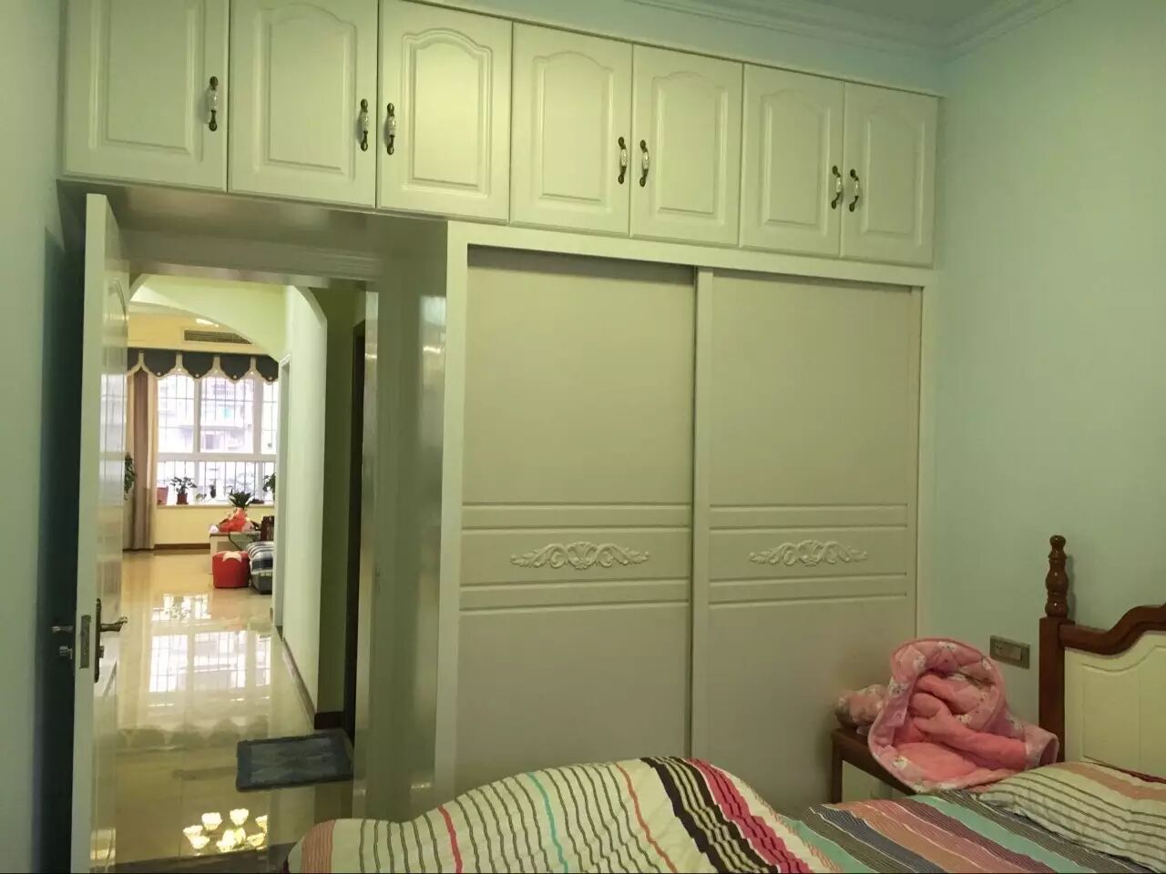 次卧现在老公妹妹在住,因为还在读书,所以做了书桌,以后有个小孩也可以住。