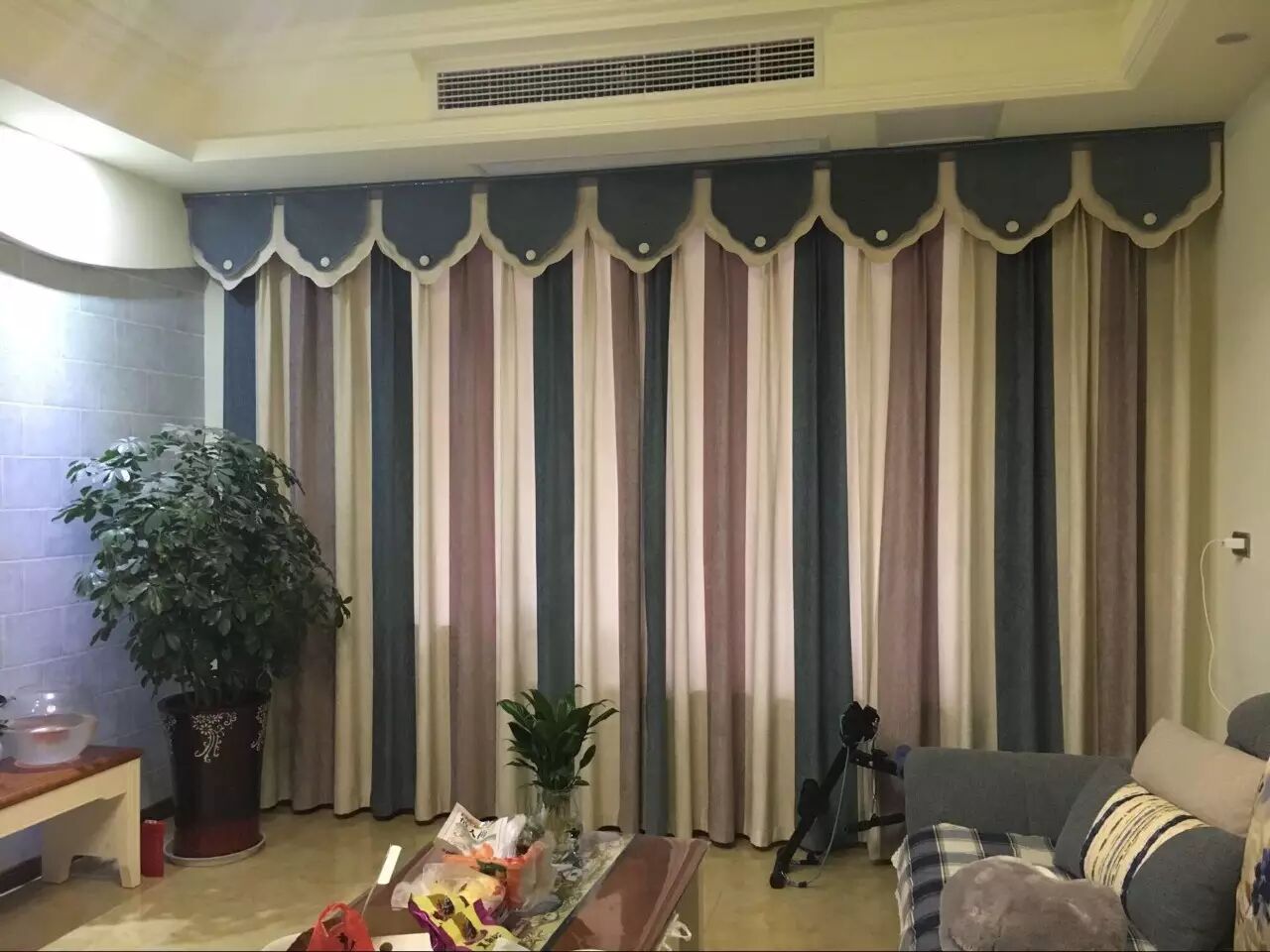 窗帘,雪尼尔面料的,本来想要粗棉麻的,但是棉麻的没有这种条纹的,幔子的样式是自已在网上找的图,让师傅做的。