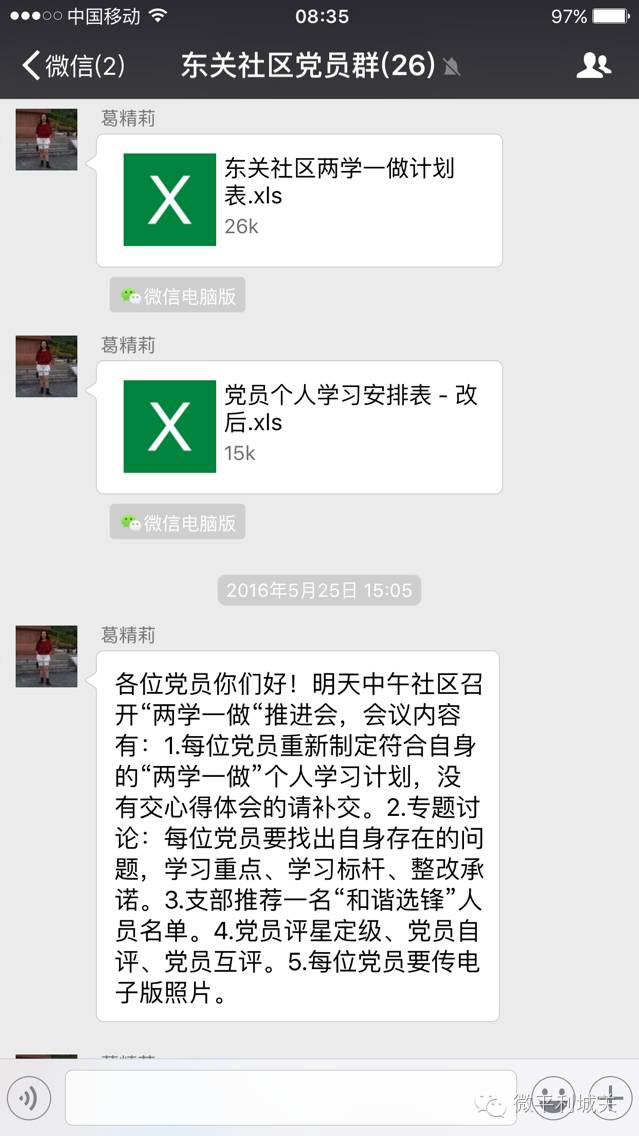 党支部利用“支部微信群”为支部党员定期传送党的路线、方针、政策和上级文件精神;每两周开展一次网络生活会议,重点传达镇党委政府的工作要求、讨论支部近期工作、汇报“两学一做”学习教育心得体会、深挖自身存在的问题、落实学习重点和整改承诺;平日里党员们畅所欲言,互动交流,35名党员中会用微信的26名党员一个都没落下。“支部微信群”为党员搭建了学习、管理、服务的平台,让支部增强了凝聚力,使党员增添了归属感,实现了对党员便利而有效的管理。