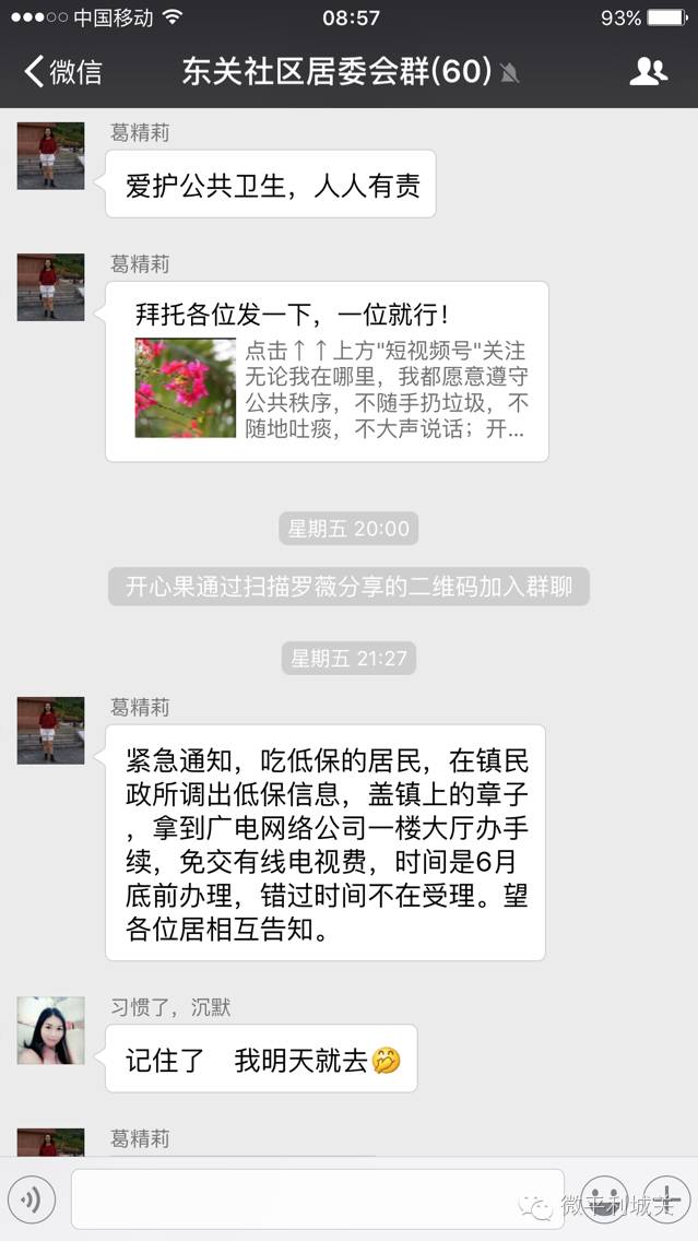 居委会利用“居民微信群”,为辖区内居民群众随时发布各项惠民政策和防火、防汛、防盗、防蜂、食品安全等相关知识,传达镇党委政府及社区工作动态,公开办事流程,解答居民疑惑。“居民微信群”既方便干群交流,又体现服务“零距离”, 架起了居民与社区干部的“连心桥”。