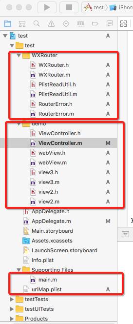 我们主要讲解一下 WXRouter里面的几个文件,以及ViewController文件,还有urlmap.plist文件,其他请下载示例demo,文末我会给出demo地址。
