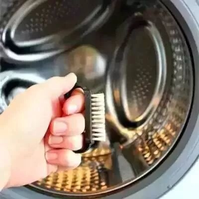 2、用毛刷蘸取精油和白醋的混合体,围绕洗衣桶刷洗一圈,可以来回多刷洗几次。
