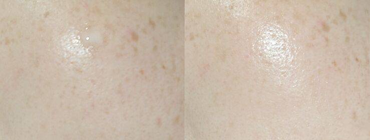 上脸后皮肤立即有了光泽,这点对于角质粗糙和角质不平整的人来说非常有帮助,因为你能切实看到皮肤变得细腻弹润了。
