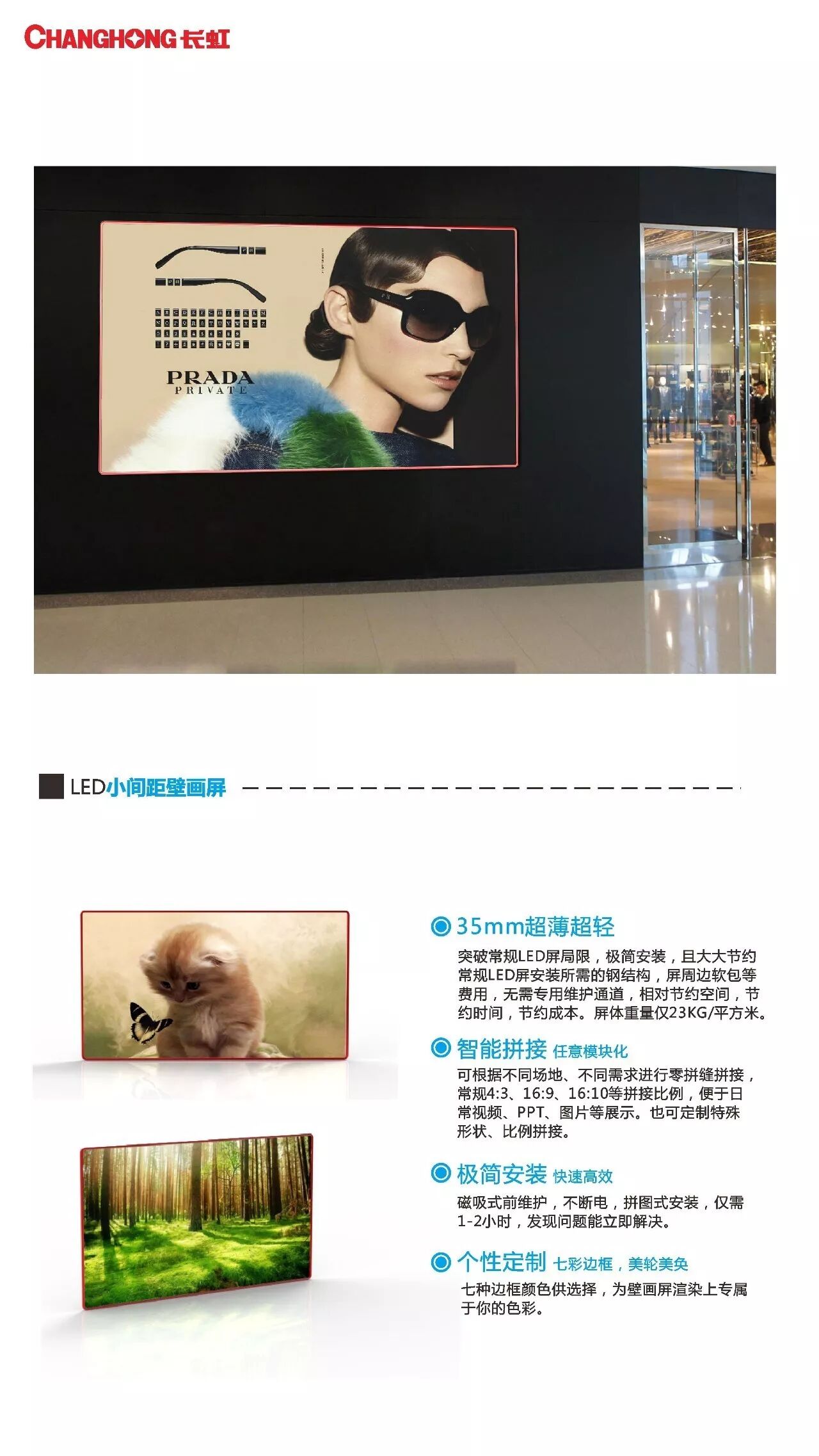 长虹产品的优势和特点:超轻超薄,支持任意安装方式;即插即用,零设置;智能模块,无线拼接;高清体验,清晰图像;播放模式随心所欲;使用常用的宽纵比,易于运输及安装;实现远程管理与控制;身临其境的视觉体验......