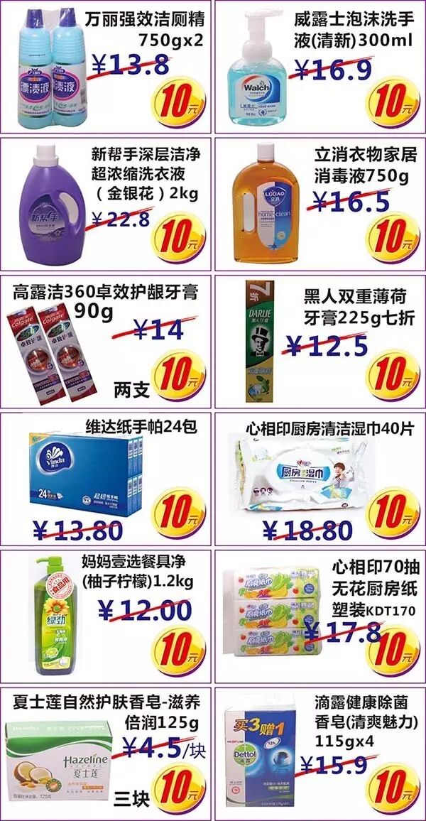6、超市冷冻包点、饮料、吸湿防虫系列、消毒水、衣物除菌液7.8折,饼干7.5折