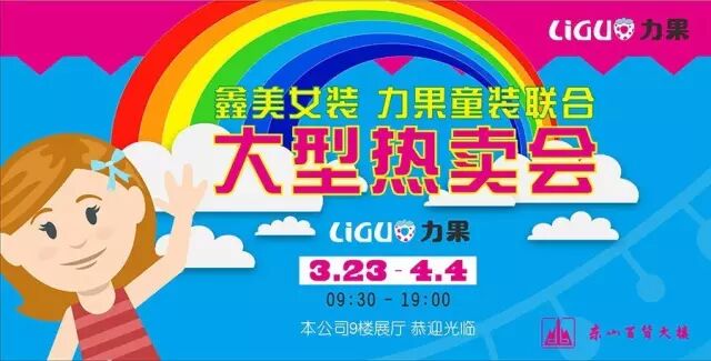 9、东山店9楼女装童装联合热卖会:鑫美女装1-3折,部分连衣裙99元;力果童装春夏装29-99元,秋冬装1.9-2.9折