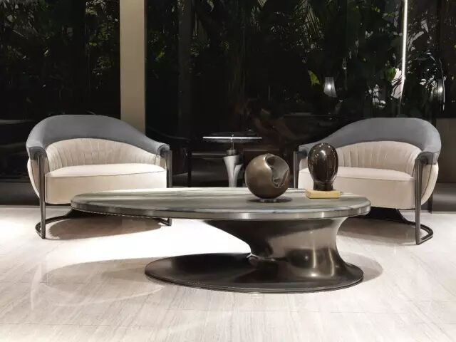 设计故意轻柔和有机,通过多种材料和加工,像皮椅套,高厚绗缝丝绒软垫壳做点缀。金属腿从扶手一直延续到底基,强调会议暂停。